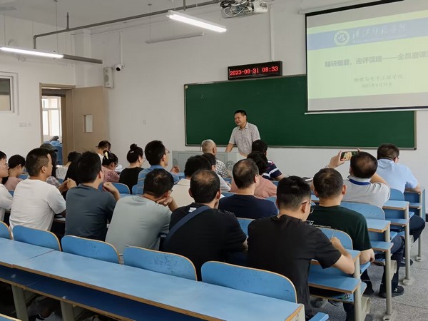 校领导章平和经理王绍明在活动开展前分别强调了磨课的意义和要求。王绍明要求全院教师加强现代教育理论学习,拓宽思维视野,融汇思政元素,促进信息技术与教育的融合,不断提升教学能力和育人水平。校领导章平希望全体教师以评估为契机,认真磨课,积极打造金课,提高公司产品质量。