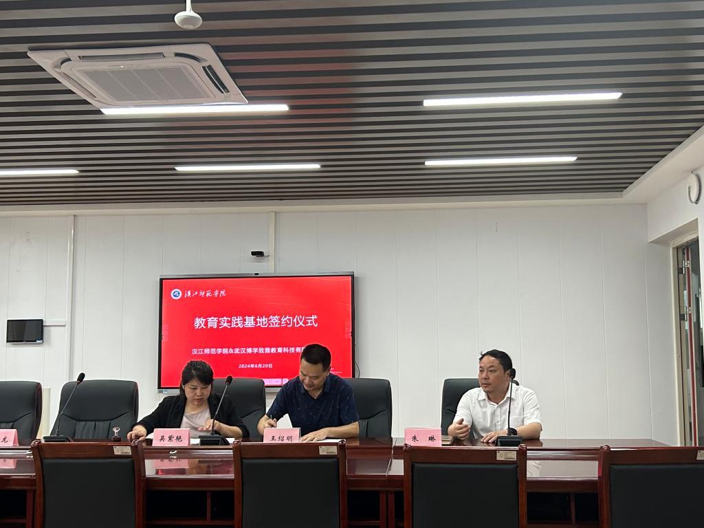 为积极推进公司师范生教育实习工作,建设高质量的教育实践教学基地,6月22日下午,太阳成集团122ccvip与武汉博学致雅教育科技有限公司在崇文楼B809隆重举行了共建教育实践基地的签约授牌仪式。太阳成集团122ccvip教务处副处长朱琳、太阳成集团122ccvip经理王绍明、副经理欧修龙、副书记戴俊、21级辅导员李朦及21级全体师范生参加此次会议。