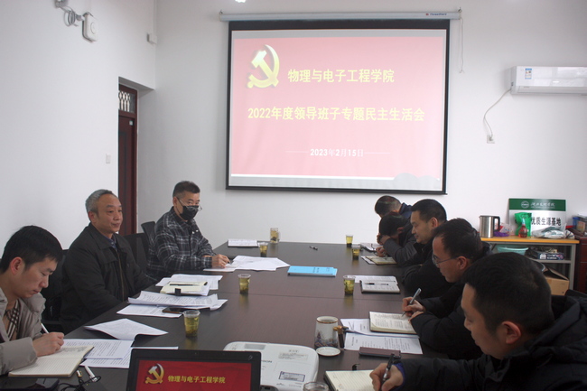 2023年2月15日下午,太阳成集团122ccvip2022年度领导班子专题民主生活会在崇文楼A503召开。校领导章平、外国语公司党总支书记夏金元、公司办公室齐鑫到会督导。公司党总支书记石义杰主持会议,公司领导班子全体成员出席会议,公司教工党支部书记欧修龙和员工党支部书记刘锋列席会议。