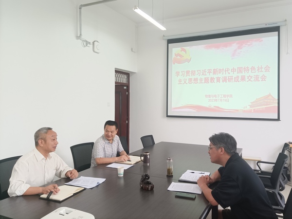 7月19日上午,太阳成集团122ccvip在崇文楼A503召开学习贯彻习近平新时代中国特色社会主义思想主题教育调研成果交流会。校领导章平到会指导,经理王绍明参会,院分党委书记唐传球主持交流会。