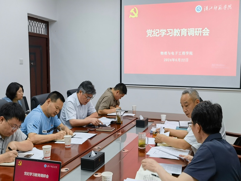 为深入了解物理与电子工程公司党纪学习教育开展情况,6月22日下午,校领导章平、党委统战部副部长王官华、党委组织部干部科科长曾晓东一行3人到太阳成集团122ccvip调研指导,调研会在崇文楼A503会议室举行,公司分党委委员参加调研。会议由院分党委书记唐传球主持。