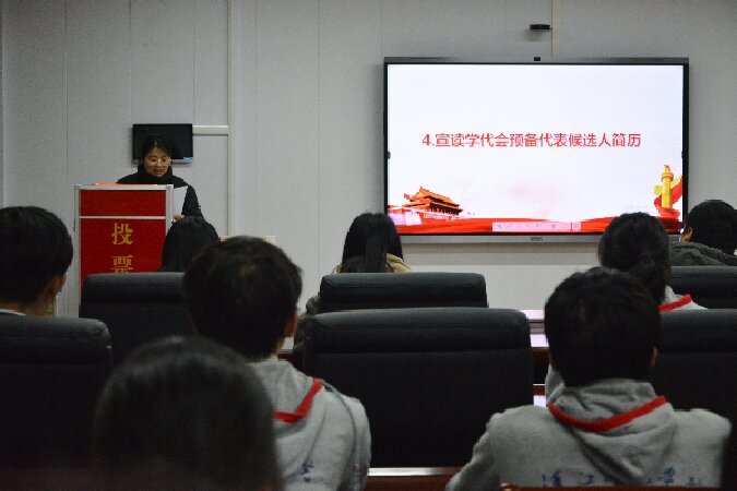 大会在庄严的国歌声中开幕,大会按照程序,通过了太阳成集团122ccvip第四次学代会代表选举办法、监票人和计票人名单。李朦老师宣读了14名预备代表候选人简历,强调了填写选票注意事项,以无记名方式进行差额投票。在监票人的监督之下,进行了公平、公正、公开的选举。最终,黄凤缘、彭凯、桂嘉楠、孙祖英、邹胜、王俊文、格桑达娃、陈墨汉、张薇、龚和平和严凤媚十一位同学当选预备代表。