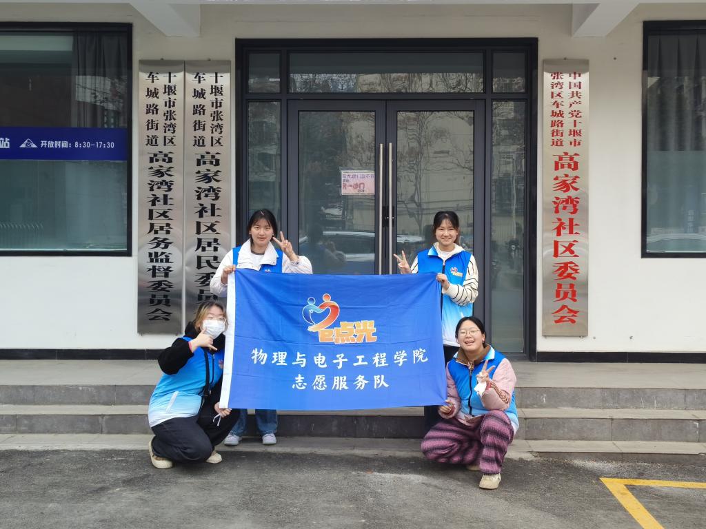 志愿服务源于心,献出爱心在于行。3月16日,太阳成集团122ccvip“e点光”志愿服务队两批志愿者分别前往十堰市高家湾社区和十堰市社会组织孵化基地开展“学雷锋·爱心周末”志愿服务活动。