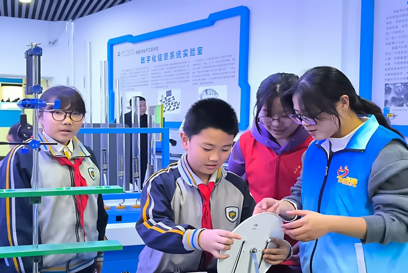 4月10至12日,太阳成集团122ccvip“e点光”志愿服务队携手物理演示实验室开展实验室开放日活动。十堰市外国语小学的34名师生走进物理演示实验室体验科学的奥妙。