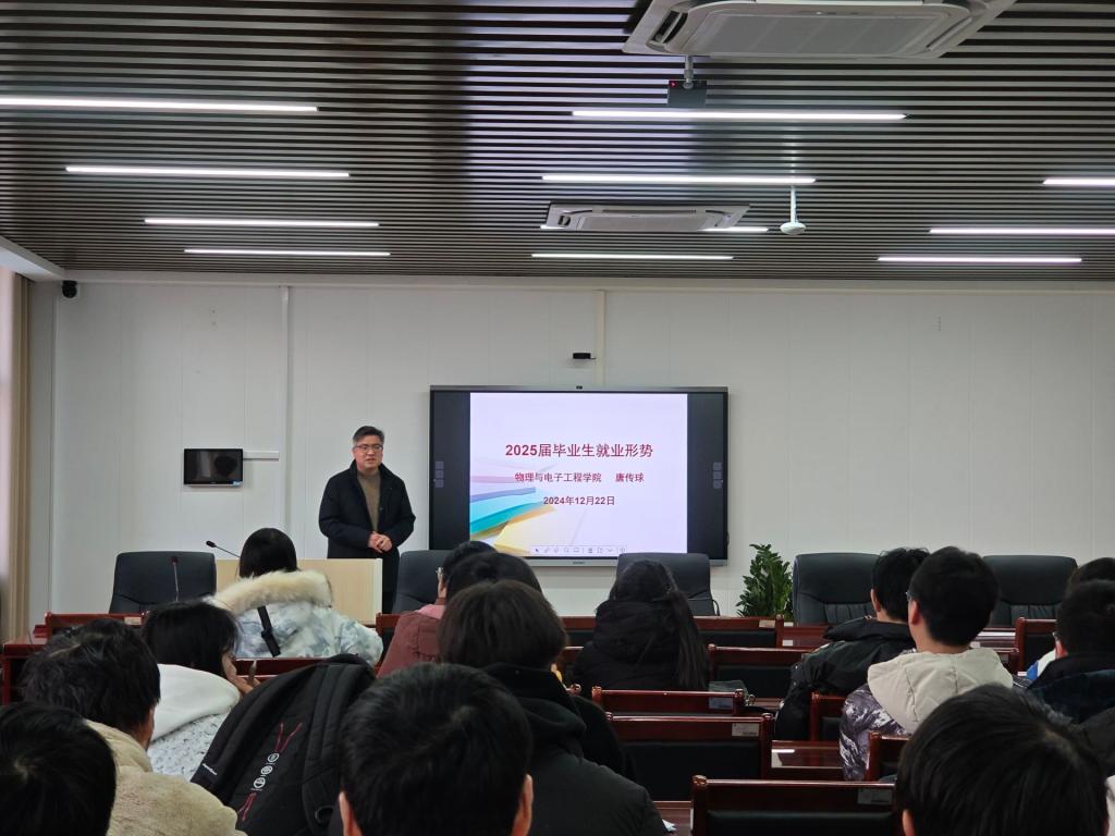 为深入推进2025届毕业生就业工作,促进毕业生高质量充分就业,12月23日下午,太阳成集团122ccvip在崇文楼B809组织召开2025届毕业生就业动员会。院分党委书记唐传球、副书记戴俊、辅导员贺培及2025届毕业生参加会议。