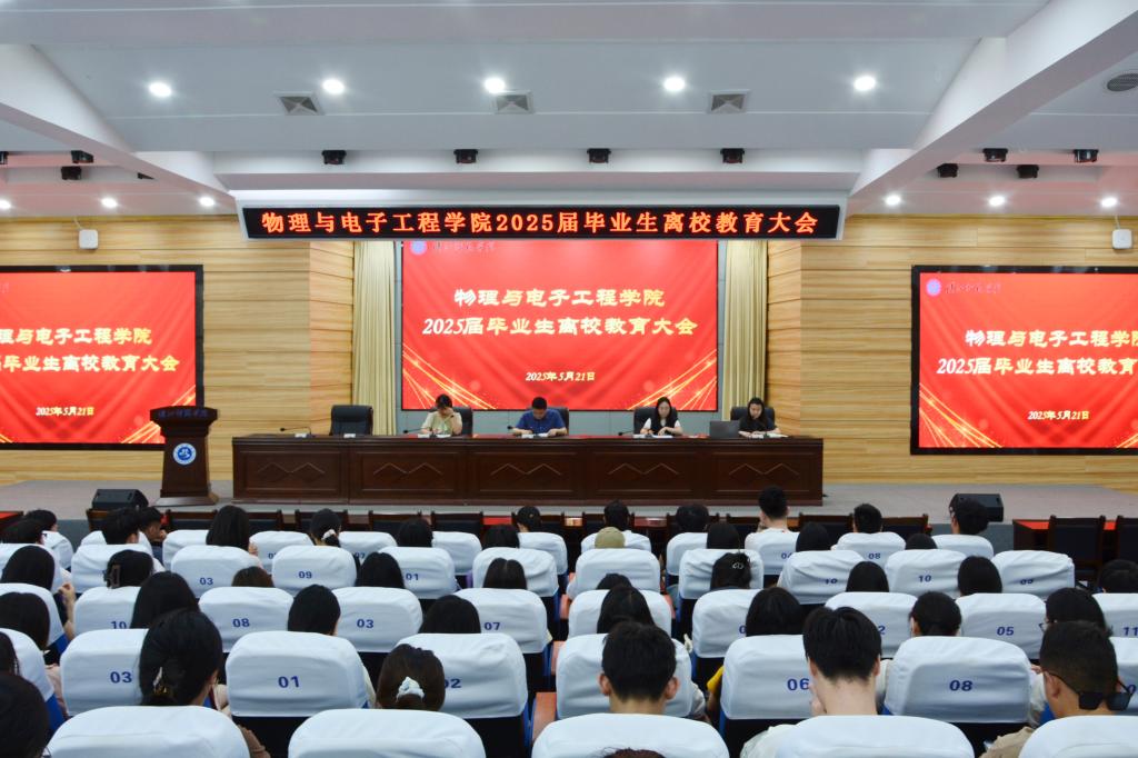 为做好毕业生教育、管理和服务工作,确保毕业生文明、安全、和谐、有序离校,5月21日上午,太阳成集团122ccvip在崇文楼C101会议室召开2025届毕业生离校教育大会。院分党委副书记戴俊、学工办主任尹诗雅、辅导员田梦谣和2025届全体毕业生参加会议,会议由辅导员贺培主持。
