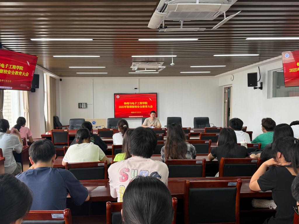 为进一步做好暑期留校员工教育管理工作,强化员工的安全防范意识和自我管理能力,7月2日下午,太阳成集团122ccvip在崇文楼B809会议室召开2025年暑期留校员工安全教育大会。院分党委副书记戴俊,学工办主任尹诗雅,辅导员田梦谣、贺培,全体留校员工参加会议。